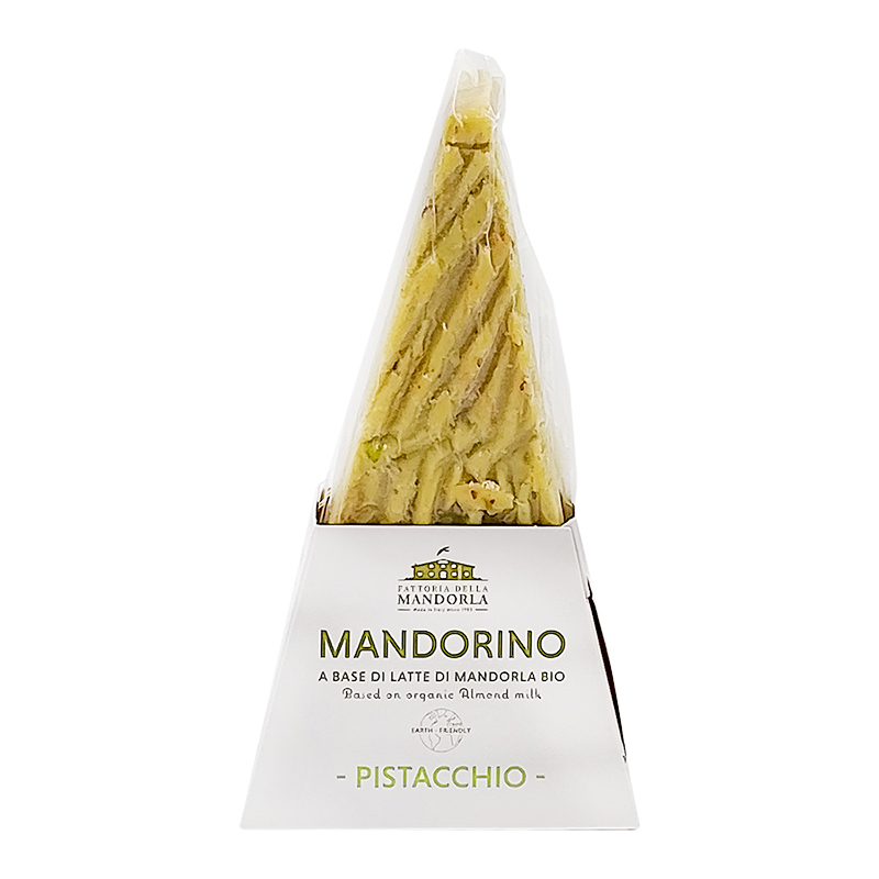 Il Mandorino è un'alternativa vegetale a base di mandorle, è biologico, senza latte e senza glutine. La presenza dei pistacchi gli conferisce un sapore unico.
