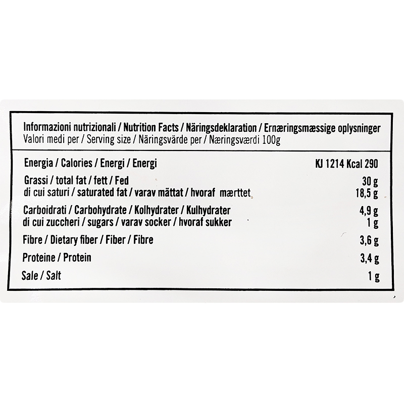 | Energia | KJ1185 Kcal 283 |