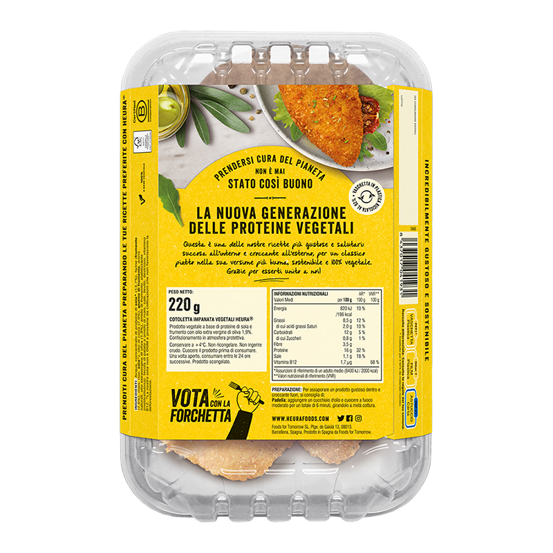 Acqua, concentrato proteico di soia 13,7%, farina di riso, farina di mais, farina di frumento, olio di semi di girasole, fecola di patate, amido di mais, concentrato aromi, stabilizzante (metilcellulosa), sale, antiossidante (acido ascorbico), fibra vegetale, aceto, destrosio e vitamina B12.
