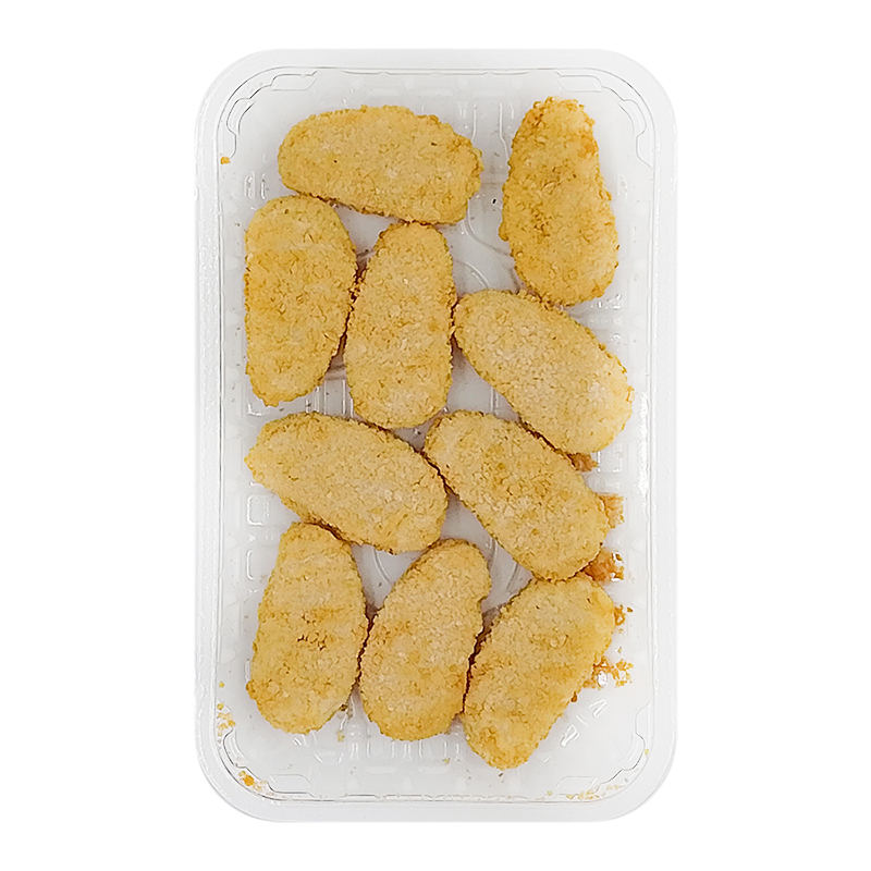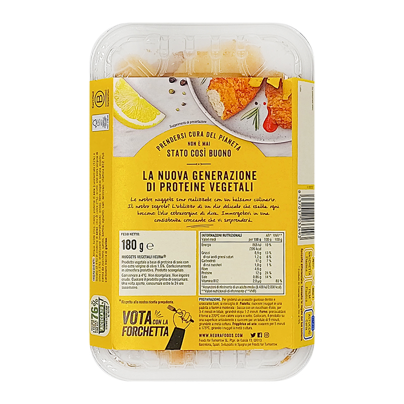 Acqua, concentrato proteico di soia 14,2%, farina di riso, farina di mais, olio di semi di girasole, fecola di patate, amido di mais, concentrato aromi, stabilizzante (metilcellulosa), sale, antiossidante (acido ascorbico), fibra vegetale, aceto, destrosio e vitamina B12.
