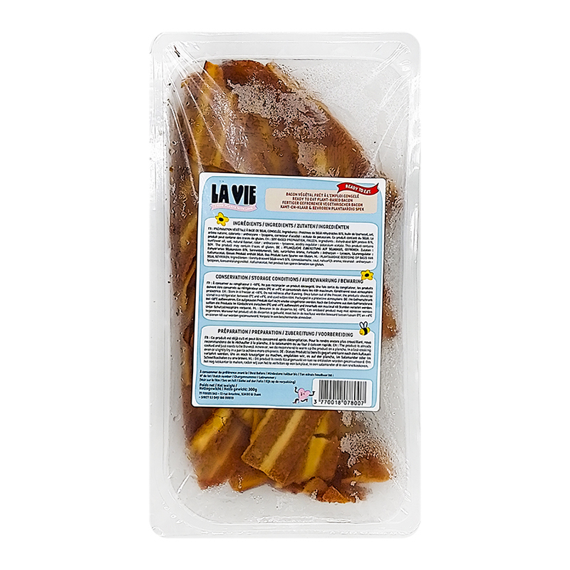 Proteine della soia reidratate 82%, olio di girasole, sale, aroma naturale, coloranti: antociani-licopene, correttore di acidità: acetati di potassio.