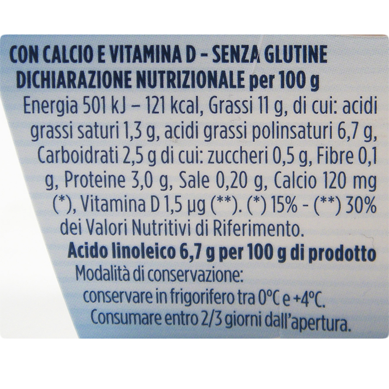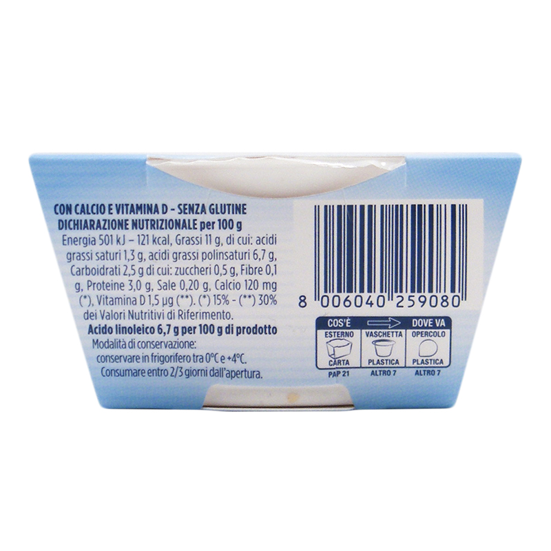 Acqua, olio di girasole, proteine di pisello (3,5%), amido modificato, zucchero, fosfato di calcio, aroma, stabilizzanti: carragenina – farina di semi di carrube – gomma di xanthan, sale marino, correttore di acidità: acido lattico, aroma naturale, cloruro di potassio, vitamina D2.