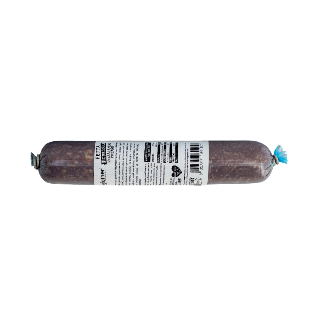 Assapora tutto il gusto piccante del VegSalame in un comodo e pratico trancio da affettare.