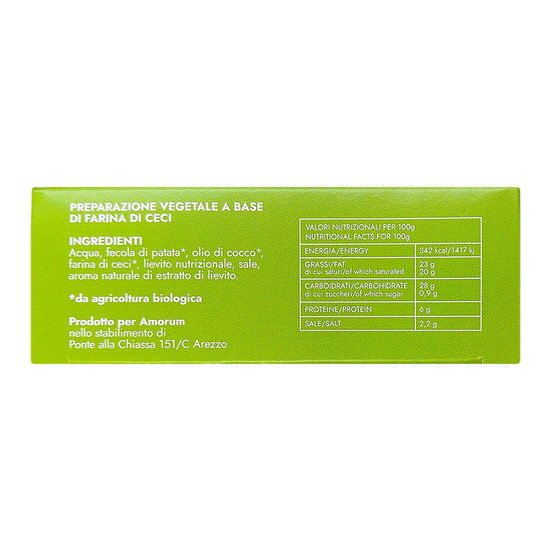 L’Amorino Biologico è un’alternativa vegetale a base di farina di ceci. Nata in collaborazione con la Rete dei Santuari, grazie all’Amorino porterai in tavola non solo l’eccellenza di un formaggio vegetale prodotto in Italia, ma anche la storia di un rifugio e di un animale che è stato salvato e che ora vive libero e felice.
