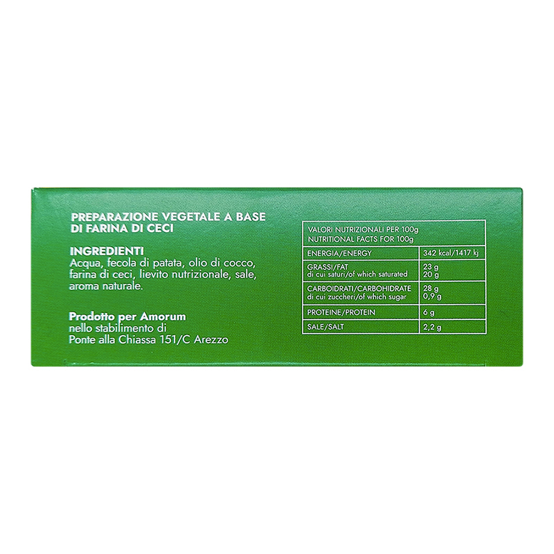 L’Amorino stagionato è un’alternativa vegetale a base di farina di ceci. Nata in collaborazione con la Rete dei Santuari, grazie all’amorino porterai in tavola non solo l’eccellenza di un formaggio vegetale prodotto in Italia, ma anche la storia di un rifugio e di un animale che è stato salvato e che ora vive libero e felice.