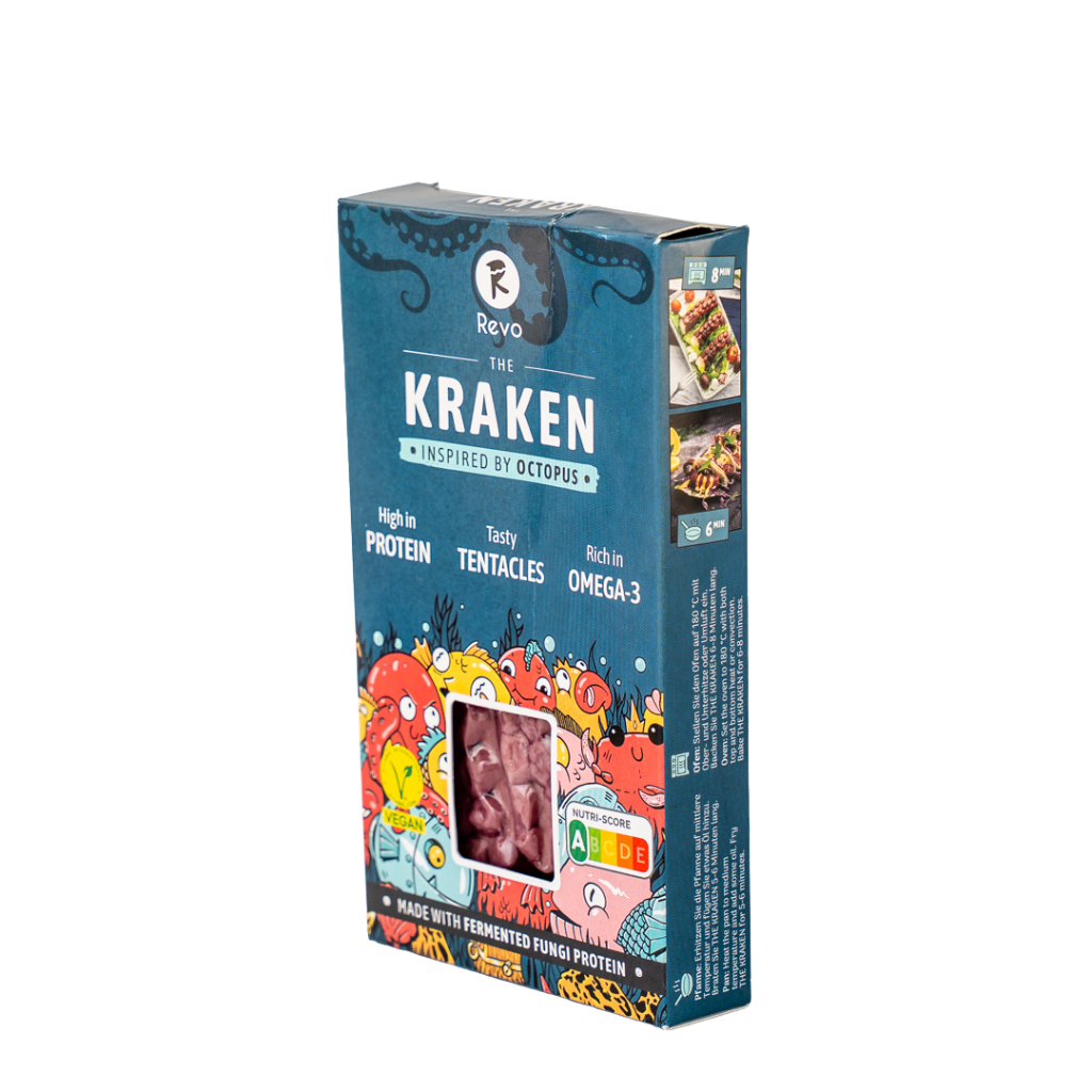 Il Kraken è l'alternativa vegetale che si ispira al polpo. A base di proteine dei funghi è ricco di omega-3, fibre e proteine vegetali ed inoltre ha ottenuto il nutriscore A.