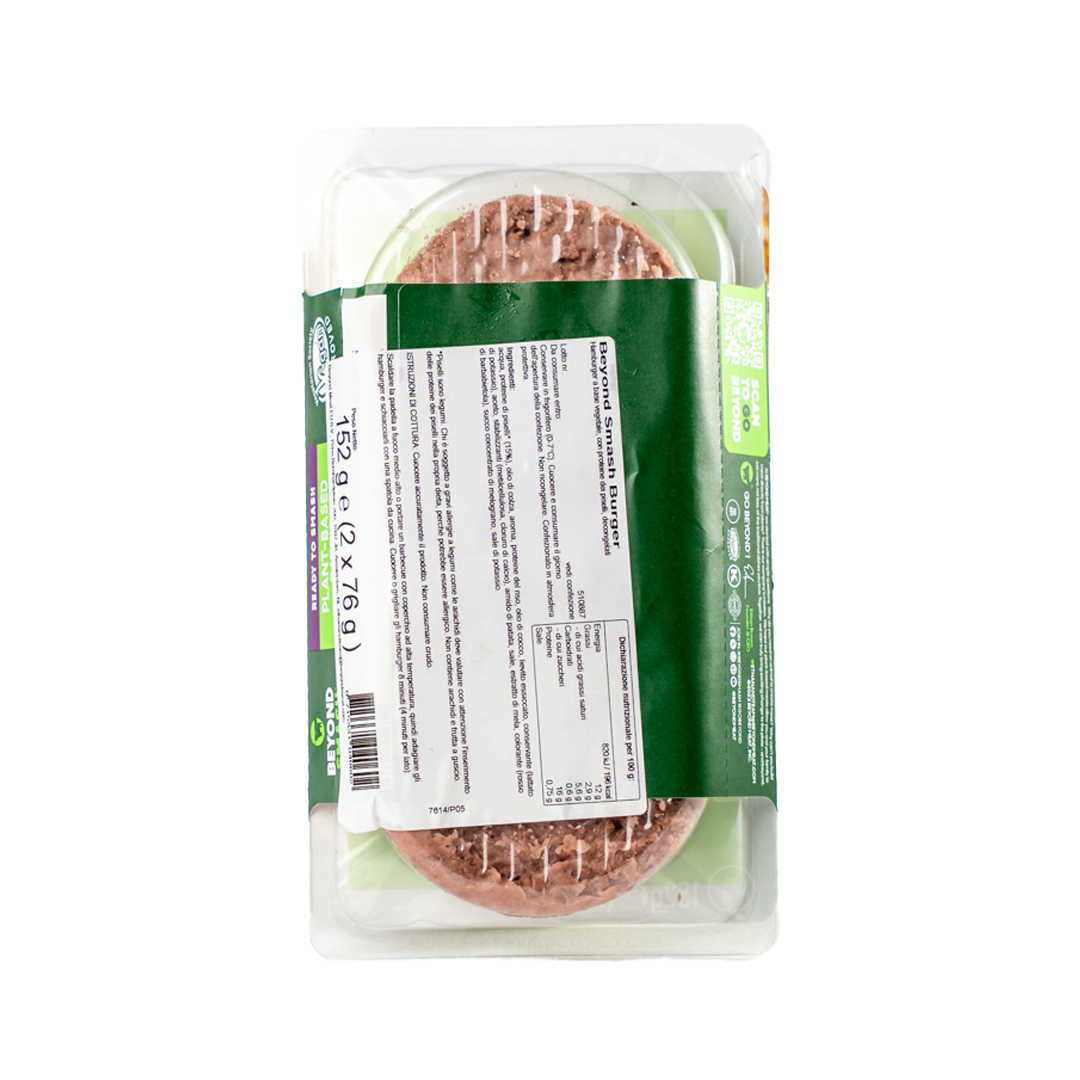 Acqua, proteine di piselli* (15%), olio di colza, aroma, proteine di riso, olio di cocco, lievito essiccato, conservante (lattato di potassio), aceto, stabilizzanti (metilcellulosa, cloruro di calcio), fecola di patate, sale, estratto di mela, colorante (rosso di barbabietola), succo di melograno concentrato, sale di potassio.