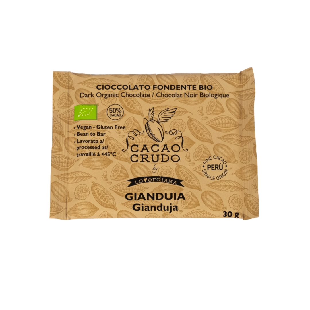 La pasta di nocciola varietà “Tonda Gentile Romana” e quella di cacao Criollo non tostati si fondono alla perfezione in un morbido cioccolato dal sapore dolce e floreale.
