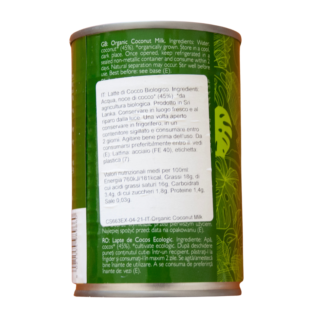 Questo latte di cocco biologico è ricco e cremoso. Le noci di cocco utilizzate sono di qualità e provengono dallo Sri Lanka. È ideale per piatti orientali e indiani come curry, zuppe e soffritti e come alternativa al latte in dessert e prodotti da forno.